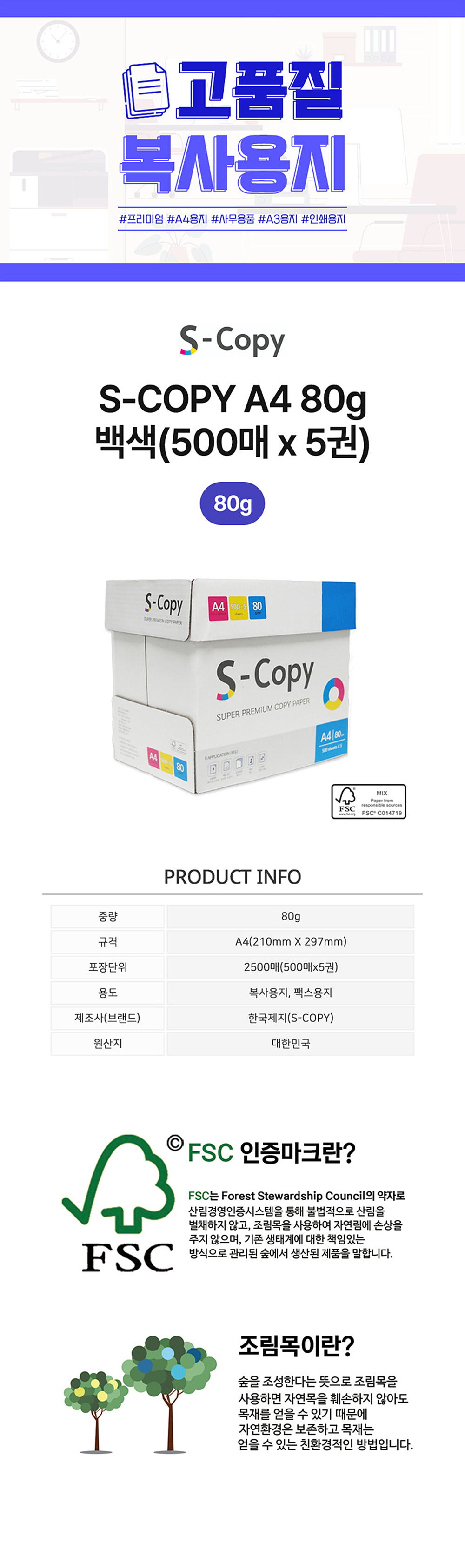 Çѱ¹Á¦Áö º¹»ç¿ëÁö S-copy A4 80g ¹é»ö