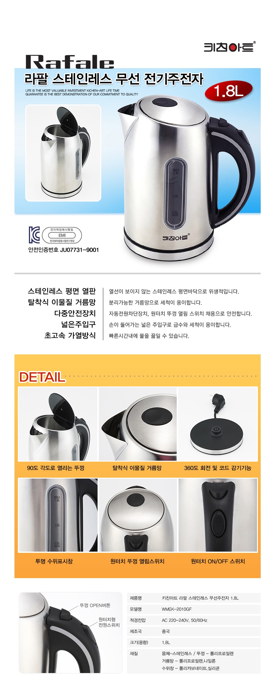 Űģ¾ÆÆ® ¶óÆÈ ½ºÅÙ ¹«¼± Àü±â ÁÖÀüÀÚ 1800ml
