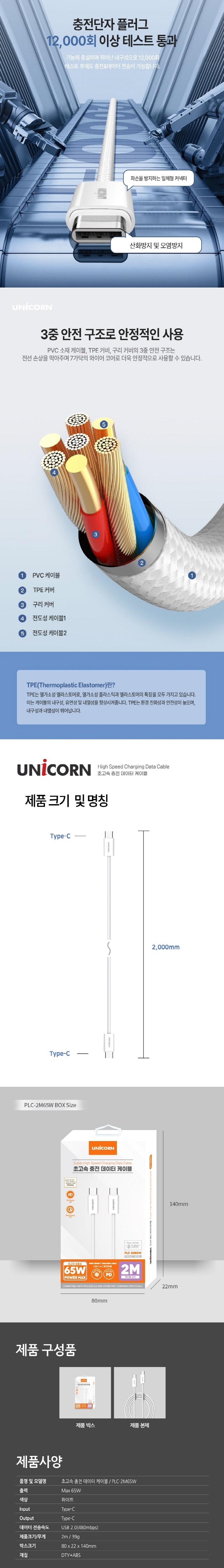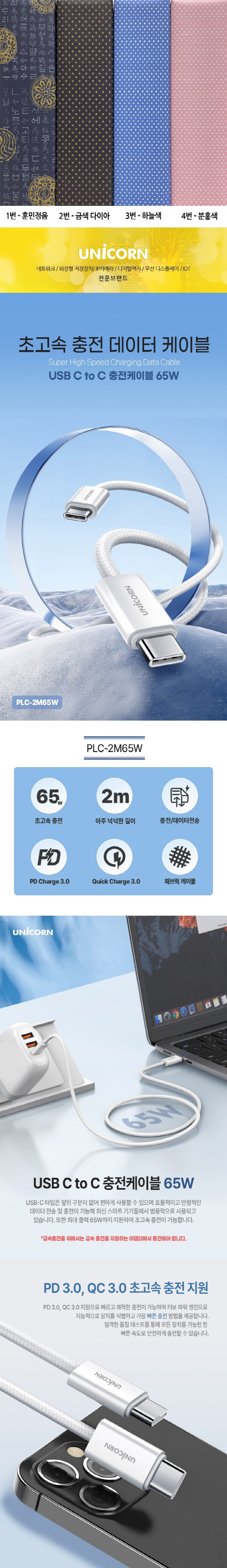 À¯´ÏÄÜ PLC-2M65W USB C to CŸÀÔ 65W °í¼Ó ÃæÀü µ¥ÀÌÅÍ ÄÉÀ̺í