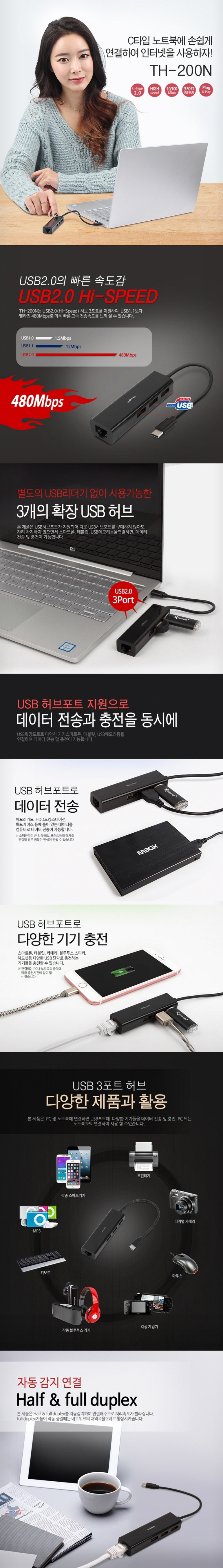 À¯´ÏÄÜ TH-200N USB CŸÀÔ 3Æ÷Æ® À¯¼±·£ ¾î´ðÅÍ