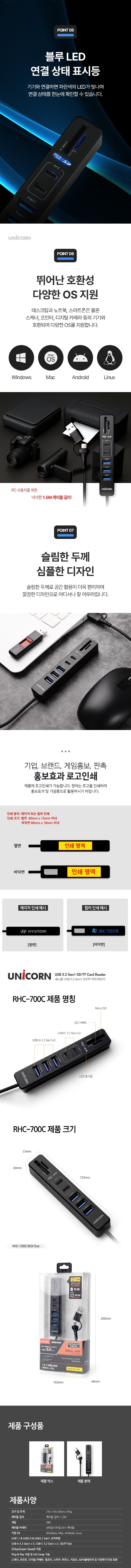 À¯´ÏÄÜ A+CŸÀÔ USB3.2 Gen1 7In1 USB ¸ÖƼÇãºê Ä«µå¸®´õ±â 1.5mÄÉÀ̺í RHC-700C